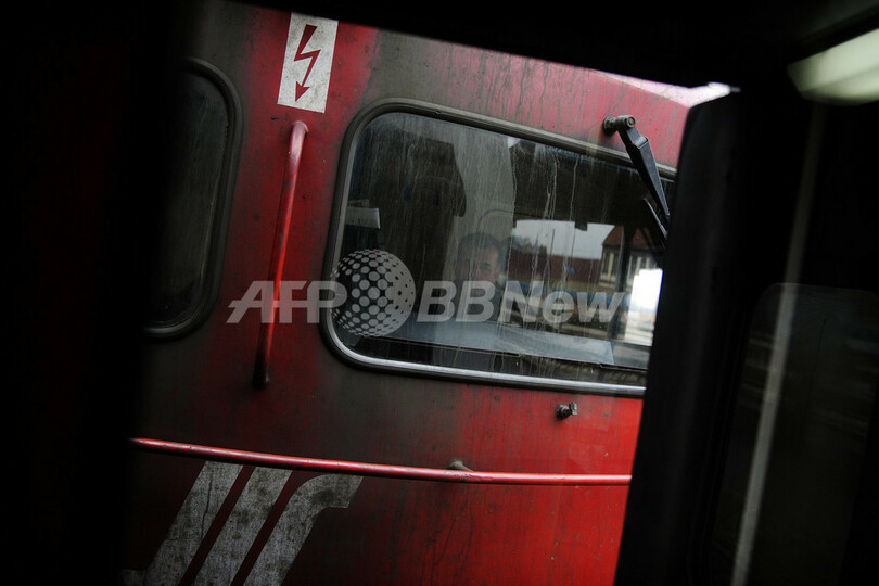 写真はセルビアのベオグラード駅で、ボスニアのサラエボ行き1番列車に乗り、出発に備える運転士(2009年12月13日撮影)。(c)AFP/ANDREJ ISAKOVIC