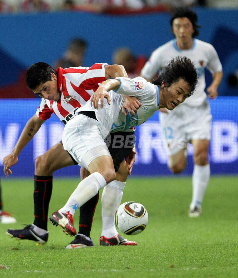 【12月16日 AFP】(記事更新、写真追加)09クラブW杯(2009 FIFA Club World Cup)準決勝、浦項スティーラース(Pohang Steelers)対エストゥディアンテス(Estudiantes)。試合はレアンドロ・ベニテス(Leandro Benitez)が2得点を記録したエストゥディアンテスが2-1で勝利し、決勝に進出した。  激しい戦いの中、スティーラーズは3人の退場者を出し、試合の残り約15分間を8人で戦うこととなった。スティーラースは、後半11分にこの試合2枚目のイエローカードを受けた主将の黄載元(Hwang Jae Won、ファン・ジェウォン)が退場となると、同27分にはファン・セバスティアン・ベロン(Juan Sebastian Veron)にファウルを犯した金在成(Kim Jae Sung、キム・ジェソン)も2枚目のイエローカードで退場し、同32分にはゴールキーパー(GK)申和容(Shin Hwa Yong、シン・ファヨン)がレッドカードを提示された。  試合を裁いたロベルト・ロゼッティ(Roberto Rosetti)主審は、スティーラースに8枚のイエローカードと1枚のレッドカード、エストゥディアンテスには2枚のイエローカードを出している。  モハメド・ビン・ザイード・ スタジアム(Mohammed Bin Zayed Stadium)でエストゥディアンテスは、スティーラースを圧倒した。  前半終了間際にベニテスの得点で先制したエストゥディアンテスは、後半8分に再びベニテスが得点を記録し、リードを2点に広げた。スティーラースはデニウソン(Denilson Martins Nascimento)の得点で1点を返したが、その後GKの申和容が退場処分となり、ゴールマウスを守ることになったデニウソンは得点することを諦めなければならなかった。  エストゥディアンテスは、19日の決勝でアトランテ(Atlante FC)対FCバルセロナ(FC Barcelona)の勝者と対戦し、スティーラースは3位決定戦に回った。(c)AFP