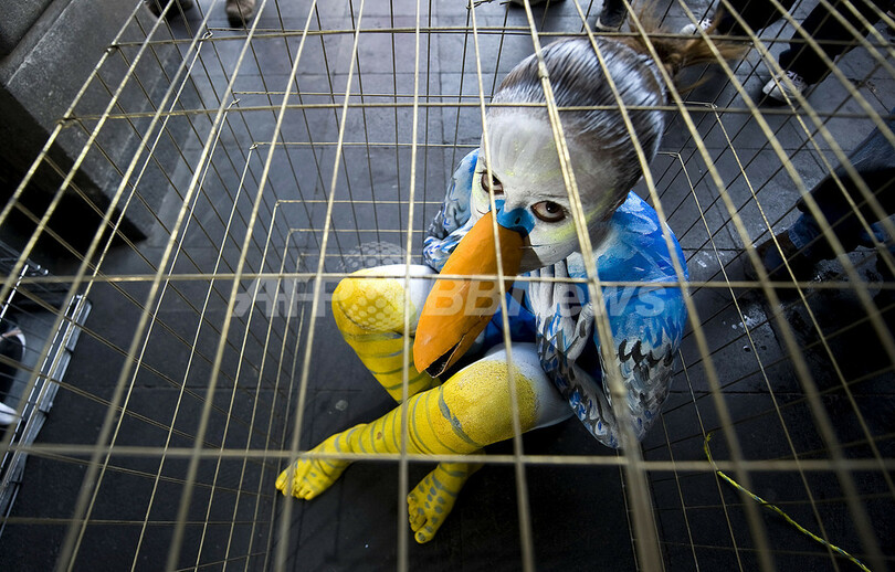ニュース ライフ 動物を使用した製品にNO!保護団体が抗議デモ メキシコ市 2009年12月15日 16:01 発信地:メキシコ市/メキシコ [ 中南米 メキシコ ] このニュースをシェア ‹ › ❮ 1/5 ❯ メキシコの首都メキシコ市(Mexico City)で、おりに入れられた動物の格好になり、動物を使用した製品に反対するデモを行った動物保護団体AnimaNaturalisのメンバー(2009年12月9日撮影)。(c)AFP/Luis Acosta 画像作成中 ! 【12月15日 AFP】動物保護団体AnimaNaturalisのメンバーが9日、メキシコ市(Mexico City)で、おりに入れられた動物の格好になり、動物を使用した製品に反対するデモを行った。(c)AFP ライフ 一覧へ> メディア・報道関係・法人の方向け 写真・動画 購入のお問合せ>