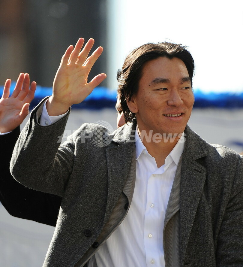 08シーズンは93試合の出場に終わるも、今シーズンは打率.274、28本塁打、90打点の成績を残した松井は、ワールドシリーズで打率.615、3本塁打、8打点を記録。ヤンキースでプレーした7年間の通算成績は打率.292、140本塁打、597打点となっている。(c)AFP