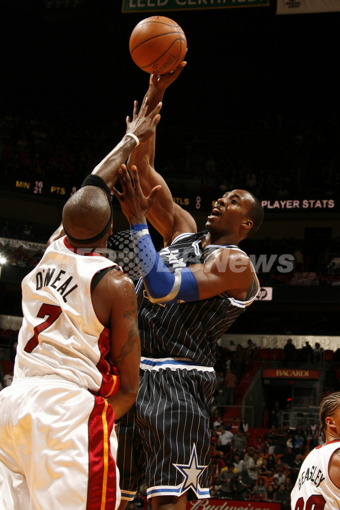【12月18日AFP】09-10NBA、マイアミ・ヒート(Miami Heat)対オーランド・マジック(Orlando Magic)。試合はドウェイン・ウェイド(Dwyane Wade)が25得点を挙げる活躍を見せたヒートが104-86で勝利した。