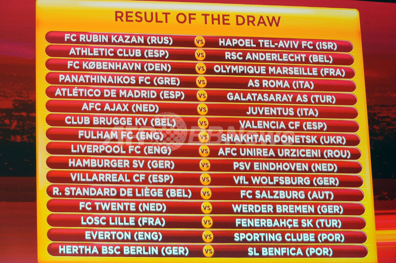 また、オリンピック・マルセイユ(Olympique de Marseille)がFCコペンハーゲン(FC Kopenhavn)と、アスレティック・ビルバオ(Athletic Bilbao)がアンデルレヒト(Anderlecht)と、アトレティコ・マドリード(Atletico de Madrid)はガラタサライ(Galatasaray)と対戦する。