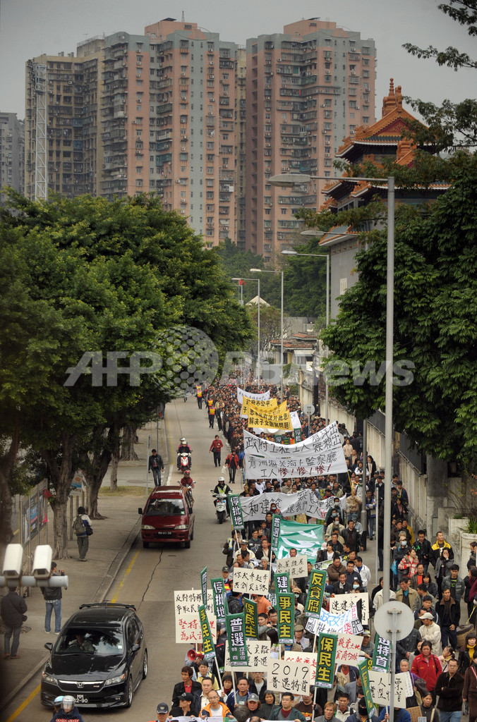 写真は、中国返還から10年を迎えたマカオで行われた民主化要求デモ(2009年12月20日撮影)。(c)AFP/ED JONES