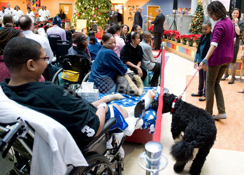 家族とハワイで過ごすクリスマス休暇に向けてオバマ大統領が準備を進めるなか、長女マリア(Malia)さん(11)とサーシャさんは、ミシェル・オバマ(Michelle Obama)夫人と、ワシントンD.C.(Washington D.C.)の小児科医院、チルドレンズ・ナショナル・メディカルセンター(Children's National Medical Center)を訪問した。