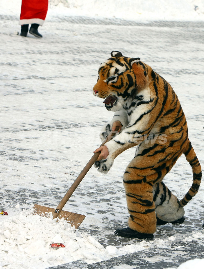 ニュース 社会 こぼれ話 雪かきを手伝う「トラ」?! 2009年12月23日 16:37 発信地:キエフ/ウクライナ [ ロシア・CIS ウクライナ ] このニュースをシェア ‹ › ❮ 1/2 ❯ ウクライナ首都キエフ(Kiev)の独立広場(Independence Square)で、作業員の雪かきを手伝うトラの着ぐるみに身を包んだ人物(2009年12月22日撮影)。(c)AFP/NATALIYA SLIPCHUK 画像作成中 ! 【12月23日 AFP】ウクライナの首都キエフ(Kiev)の独立広場(Independence Square)で22日、トラの着ぐるみに身を包んだ人物が、作業員の雪かきの手伝いを買って出た。この人物は路上で記念写真を撮影するカメラマンのアシスタントで、トラ姿は来年の干支(えと)の「寅(とら)」にちなんだものだという。(c)AFP 社会 一覧へ> メディア・報道関係・法人の方向け 写真・動画 購入のお問合せ>