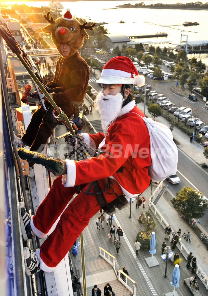 ニュース ライフ こぼれ話 サンタとトナカイ、高層ビルの窓ふき清掃 お台場 2009年12月23日 19:32 発信地:東京 [ アジア・オセアニア 東京 ] このニュースをシェア ‹ › ❮ 3/6 ❯ 東京・お台場(Odaiba)のショッピングモールで、高さ31メートルの建物外壁の窓ガラスを清掃するサンタクロースとトナカイ姿の清掃作業員(2009年12月23日撮影)。(c)AFP/Yoshikazu TSUNO 画像作成中 ! 【12月23日 AFP】東京・お台場(Odaiba)のショッピングモールで23日、サンタクロースとトナカイの姿に扮した清掃作業員が高さ31メートルの建物外壁の窓ガラスを清掃した。(c)AFP ライフ 一覧へ> メディア・報道関係・法人の方向け 写真・動画 購入のお問合せ>