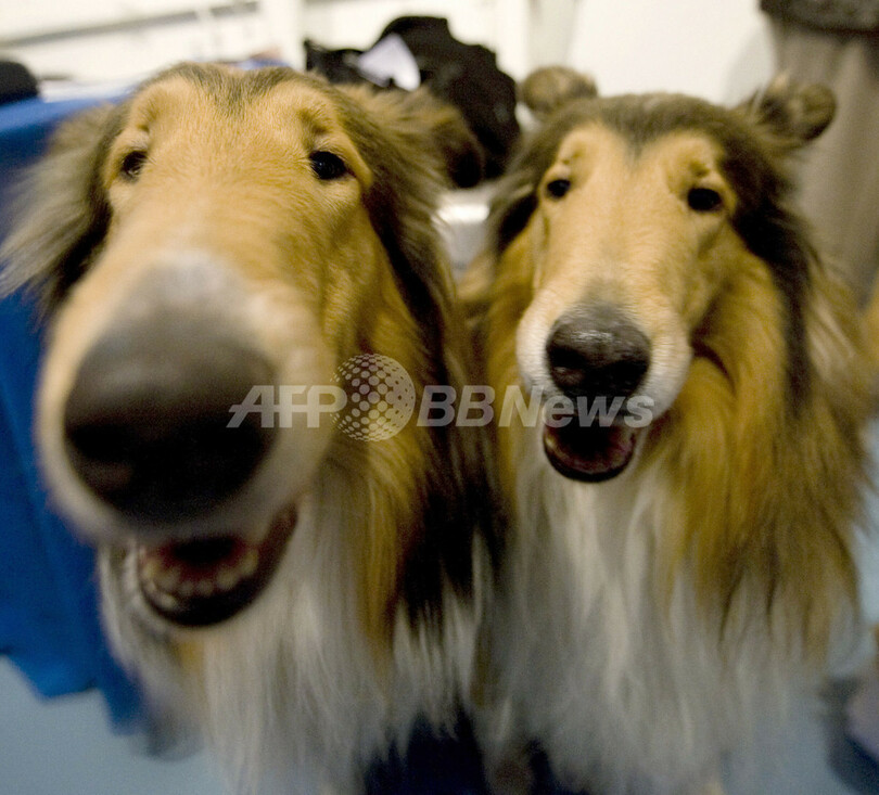写真は、発表会に出席したコリー犬(2009年12月22日撮影)。(c)AFP/DON EMMERT