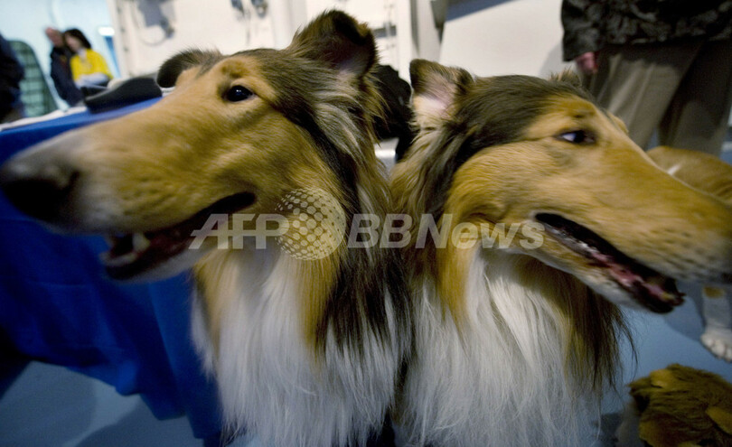 写真は、発表会に出席したコリー犬(2009年12月22日撮影)。(c)AFP/DON EMMERT