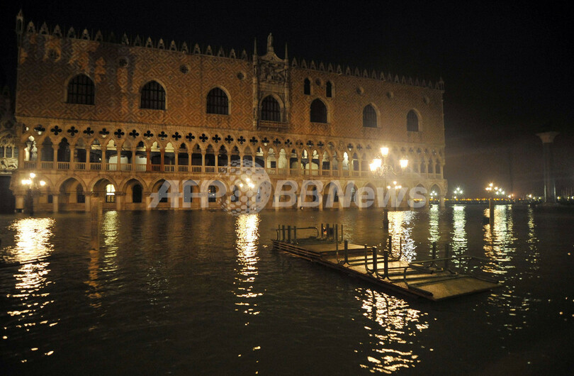 ちなみに、ベネチアにおける最悪の水没被害は、1966年11月4日の194センチという。(c)AFP