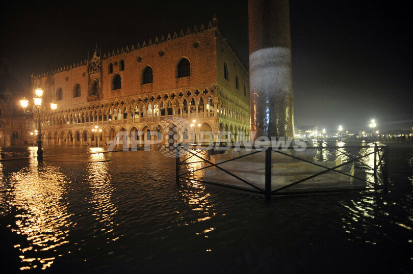ちなみに、ベネチアにおける最悪の水没被害は、1966年11月4日の194センチという。(c)AFP