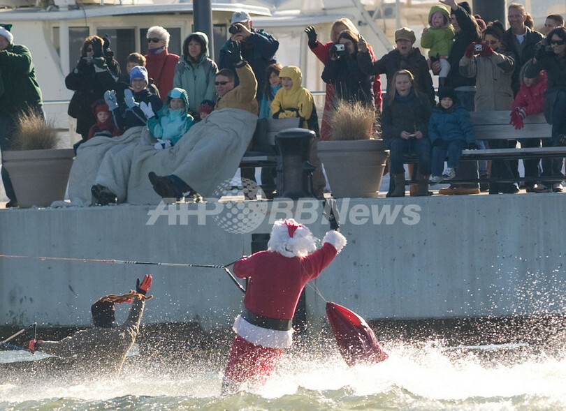 米ポトマック川に今年もあらわる!イブ恒例サンタの水上スキー