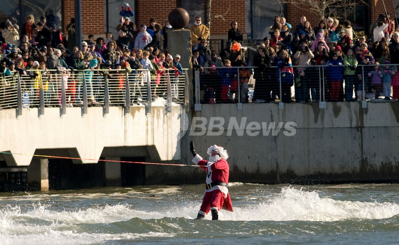 米ポトマック川に今年もあらわる!イブ恒例サンタの水上スキー