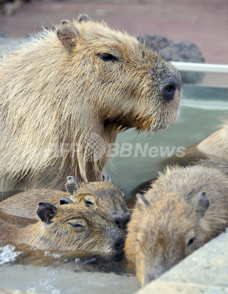 ニュース ライフ 露天風呂でホットするカピバラの親子、埼玉県こども動物自然公園 2009年12月27日 21:47 発信地:埼玉 [ アジア・オセアニア 埼玉 ] このニュースをシェア ‹ › ❮ 5/7 ❯ 埼玉・東松山市にある埼玉県こども動物自然公園(Saitama Children's Zoo)で温かい「温泉」に入るカピバラの親子。カピバラは最大のげっし類。同動物園では寒い日にカピバラを露天風呂に入れている(2009年12月27日撮影)。(c)AFP/YOSHIKAZU TSUNO 画像作成中 ! 【12月27日 AFP】埼玉・東松山市にある埼玉県こども動物自然公園(Saitama Children's Zoo)で温かい「温泉」に入るカピバラの親子。カピバラは最大のげっし類。同動物園では寒い日にカピバラを露天風呂に入れている。(c)AFP ライフ 一覧へ> メディア・報道関係・法人の方向け 写真・動画 購入のお問合せ>