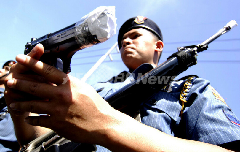 ニュース ライフ 新年の祝砲禁止、警官の銃を封印 フィリピン 2009年12月30日 10:16 発信地:ビクタン/フィリピン [ アジア・オセアニア フィリピン ] このニュースをシェア ‹ › ❮ 2/5 ❯ フィリピン・マニラ(Manila)郊外ビクタン(Bicutan)の首都圏警察(National Capital Region Police Office、NCRPO)本部で、新年の祝砲を防止するためテープで封印された警察官の銃(2009年12月29日撮影)。(c)AFP/NOEL CELIS 画像作成中 ! 【12月30日 AFP】フィリピンでは、花火や爆竹など大きな音で新年を祝うのが習わしだが、警察官や兵士が祝砲と称して銃を撃ち鳴らすことが問題になっている。こうした事態を防ぐため、マニラ(Manila)および近郊を管轄する首都圏警察(National Capital Region Police Office、NCRPO)では29日、新年を前に警察官が携行する銃の銃口がテープで封印された。(c)AFP ライフ 一覧へ> メディア・報道関係・法人の方向け 写真・動画 購入のお問合せ>