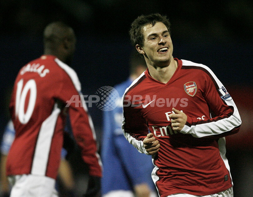 アーセナルはエドゥアルド・ダ・シルバ(Eduardo Da Silva)、サミル・ナスリ(Samir Nasri)、アーロン・ラムジー(Aaron Ramsey)、アレクサンドル・ソング(Alexandre Song)が得点して勝利し、首位チェルシー(Chelsea)との勝ち点差を4とした。3位アーセナルは首位チェルシーより消化試合が1つ少ない。(c)AFP/James Piercy
