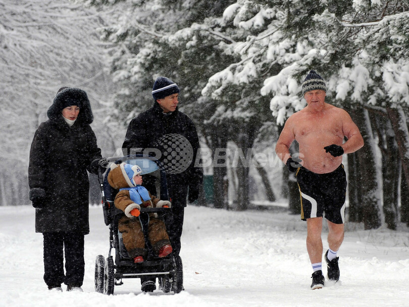 ニュース ライフ こぼれ話 雪の中で半裸ランニング? ベラルーシ 2010年1月1日 14:23 発信地:ミンスク/ベラルーシ [ ロシア・CIS ベラルーシ ] このニュースをシェア ベラルーシの首都ミンスク(Minsk)で、雪の中を半裸でランニングする男性と、それを眺める親子(2009年12月29日撮影)。(c)AFP/VIKTOR DRACHEV 【1月1日 AFP】写真はベラルーシの首都ミンスク(Minsk)で29日、雪の中を半裸でランニングする高齢の男性と、それを眺める「厚着」の親子3人。(c)AFP ライフ 一覧へ> メディア・報道関係・法人の方向け 写真・動画 購入のお問合せ>