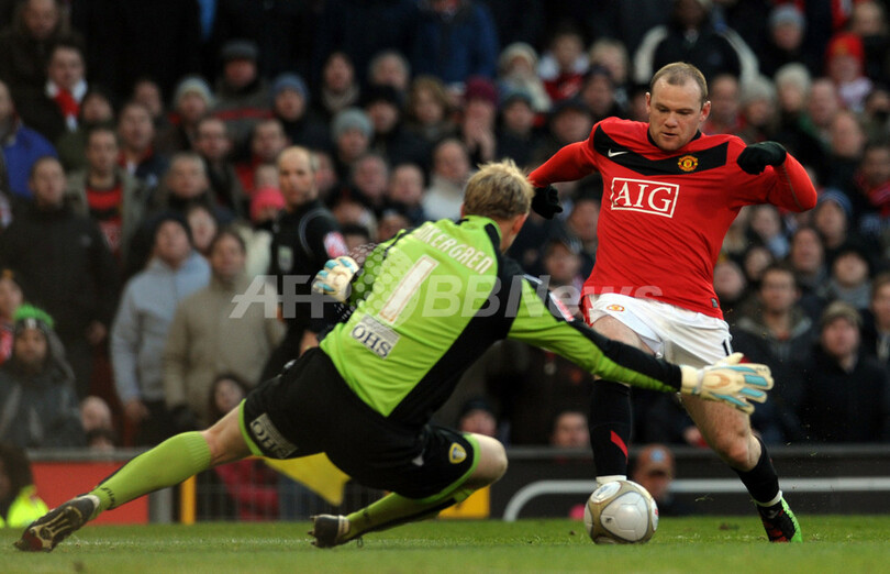 前半19分、ハーフウェイライン手前の自陣右サイドでボールを奪ったジョナサン・ハウソン(Jonathan Howson)がロングパスを蹴りだすと、ベックフォードはボールをコントロールミスしたものの持ち直し、マンチェスター・ユナイテッドのウェス・ブラウン(Wes Brown)と飛び込んでくるGKトマシュ・クシュチャク(Tomasz Kuszczak)の間にボールを転がせて、決勝点を奪った。(c)AFP/Ian Whittell