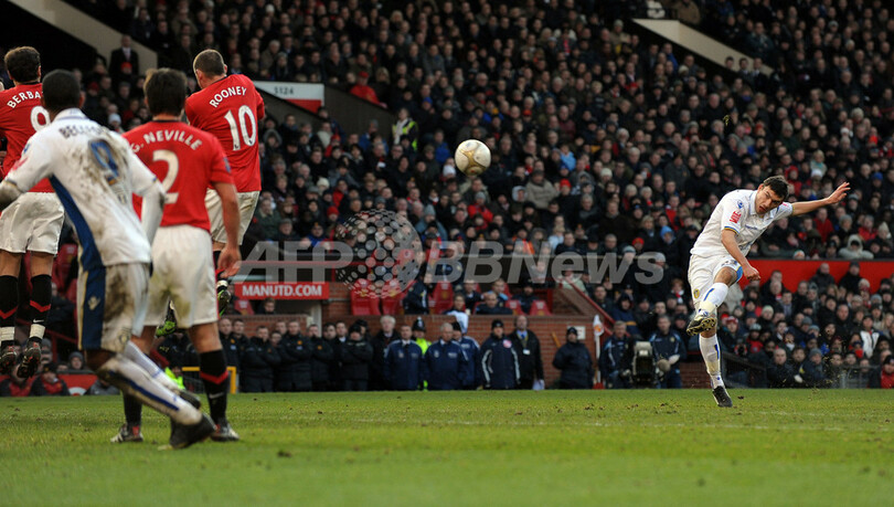 前半19分、ハーフウェイライン手前の自陣右サイドでボールを奪ったジョナサン・ハウソン(Jonathan Howson)がロングパスを蹴りだすと、ベックフォードはボールをコントロールミスしたものの持ち直し、マンチェスター・ユナイテッドのウェス・ブラウン(Wes Brown)と飛び込んでくるGKトマシュ・クシュチャク(Tomasz Kuszczak)の間にボールを転がせて、決勝点を奪った。(c)AFP/Ian Whittell