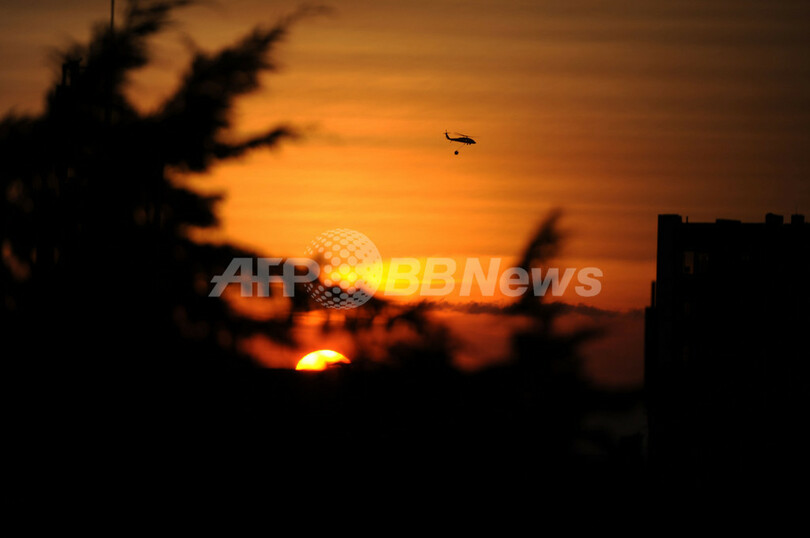 写真は、ボゴタで山火事の消火活動を終えて、基地に戻るヘリコプター(2010年1月4日撮影)。(c)AFP/Eitan Abramovich