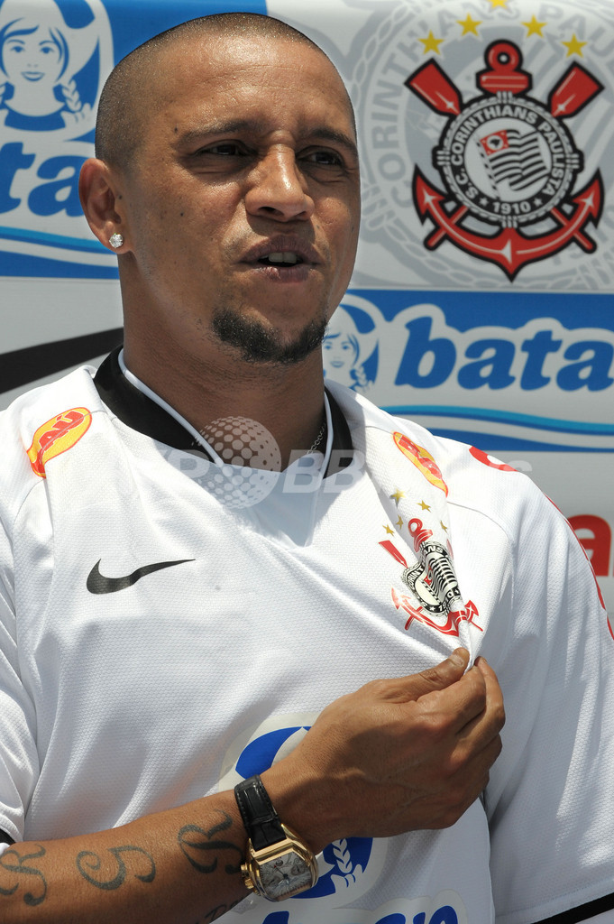 Roberto Carlos)の入団会見を行った。(c)AFP