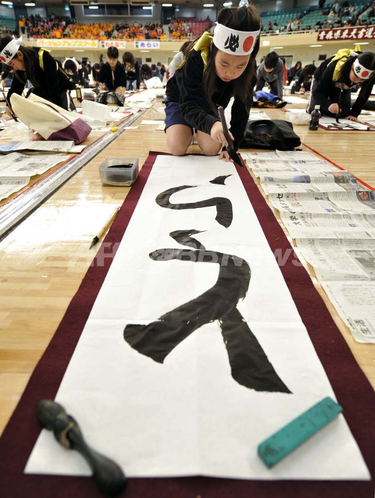 ニュース ライフ 新年恒例の書き初め大会、日本武道館で 3300人が参加 2010年1月5日 14:39 発信地:東京 [ アジア・オセアニア 東京 ] このニュースをシェア ‹ › ❮ 3/6 ❯ 東京・千代田区の日本武道館で行われた「第46回全日本書初め大展覧会」で、筆を振るう少女(2010年1月5日撮影)。(c)AFP/Kazuhiro NOGI 画像作成中 ! 【1月5日 AFP】東京・千代田区の日本武道館で5日、新年恒例の「第46回全日本書初め大展覧会」が開催され、約3300人が書道の腕前を披露した。(c)AFP ライフ 一覧へ> メディア・報道関係・法人の方向け 写真・動画 購入のお問合せ>