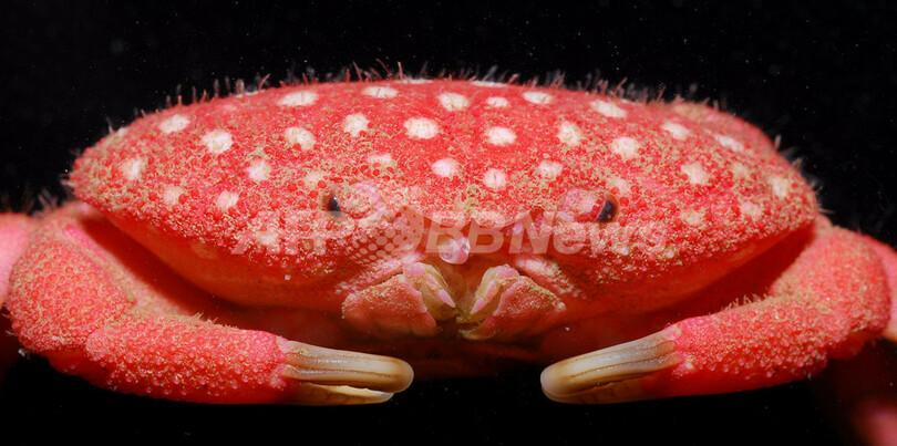 【1月5日 AFP】台湾の国立台湾海洋大学(National Taiwan Ocean University)の海洋生物学者が5日、イチゴ色をした水玉模様のカニの新種を発見したと発表した。