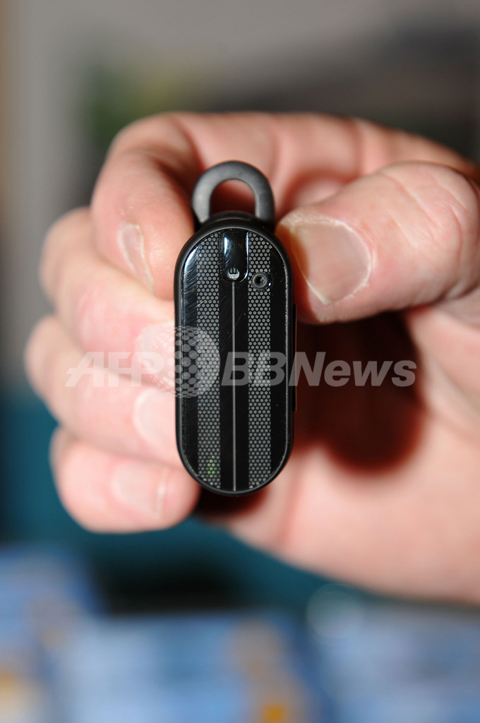 写真は、記者向け内覧会で展示されたBluetrek Technologies社の音声認識装置「Concerto Bluetooth Headset」。音声だけで電子メールの読み上げや返信の入力などができる(2010年1月5日撮影)。(c)AFP/Robyn Beck