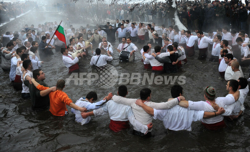 ニュース ライフ 御公現の祝日、凍てつく川で伝統舞踊を踊る男たち ブルガリア 2010年1月7日 11:05 発信地:カロファー/ブルガリア [ ヨーロッパ ブルガリア ] このニュースをシェア ‹ › ❮ 8/11 ❯ 御公現の祝日(東方の三博士のベツレヘム来訪を祝う日)の6日、ブルガリアのカロファー(Kalofer)では男性たちが凍てついたトゥンジャ(Tundzha)川に飛び込み、民族ダンス「ホロ(Horo)」を踊った。この日、東方正教会の僧侶たちは川や湖に十字架を投げ入れるが、これを拾った者、あるいは冷たい水の中でダンスをした者は、1年を通じて健康でいられると信じられている。写真はトゥンジャ川で「ホロ」を踊る男たち(2010年1月6日撮影)。(c)AFP/NIKOLAY DOYCHINOV 画像作成中 ! 【1月7日 AFP】御公現の祝日(東方の三博士のベツレヘム来訪を祝う日)の6日、ブルガリアのカロファー(Kalofer)では男性たちが凍てついたトゥンジャ(Tundzha)川に飛び込み、民族ダンス「ホロ(Horo)」を踊った。(c)AFP ライフ 一覧へ> メディア・報道関係・法人の方向け 写真・動画 購入のお問合せ>