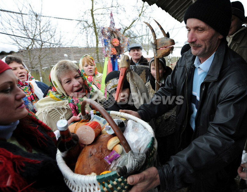 【1月8日 AFP】ロシア正教会のクリスマスに当たる7日、ベラルーシでは伝統のKoliadyを祝う人びとの姿がみられた。元来、Koliadyは冬至を祝う多神教の祝日だったが、太陽暦の普及に伴い、クリスマスや新年も祝うようになった。(c)AFP