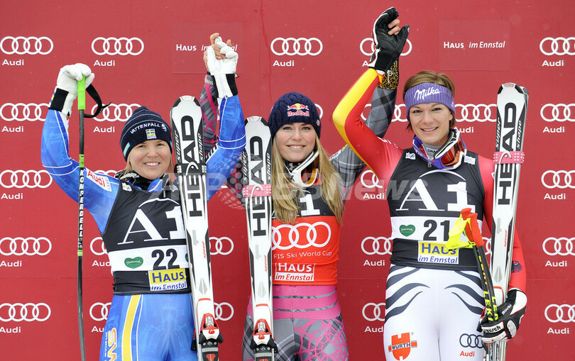2位には1分39秒19でスウェーデンのアニャ・パーション(Anja Paerson)が、3位には1分39秒23でドイツのマリア・リーシュ(Maria Riesch)が入った。(c)AFP