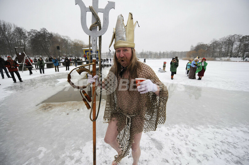 ニュース ライフ こぼれ話 ドイツで新春コスプレ寒中水泳 2010年1月10日 18:28 発信地:ベルリン/ドイツ [ ヨーロッパ ドイツ ] このニュースをシェア ‹ › ❮ 10/15 ❯ ドイツ首都ベルリン(Berlin)のオランケ湖(Orankesee)などで10日、新春恒例の寒中水泳大会が開かれ、マイナス3度の気温の中、妖精や天使、神々などの格好に扮した参加者たちが氷の張った湖に飛び込んだ。写真は寒中水泳の参加者(2010年1月10日撮影)。(c)AFP/DDP/AXEL SCHMIDT 画像作成中 ! 【1月10日 AFP】ドイツ首都ベルリン(Berlin)のオランケ湖(Orankesee)などで10日、新春恒例の寒中水泳大会が開かれ、マイナス3度の気温の中、妖精や天使、神々などの格好に扮した参加者たちが氷の張った湖に飛び込んだ。(c)AFP/DDP ライフ 一覧へ> メディア・報道関係・法人の方向け 写真・動画 購入のお問合せ>