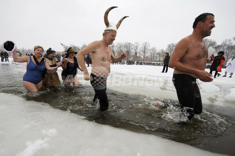 ニュース ライフ こぼれ話 ドイツで新春コスプレ寒中水泳 2010年1月10日 18:28 発信地:ベルリン/ドイツ [ ヨーロッパ ドイツ ] このニュースをシェア ‹ › ❮ 6/15 ❯ ドイツ首都ベルリン(Berlin)のオランケ湖(Orankesee)などで10日、新春恒例の寒中水泳大会が開かれ、マイナス3度の気温の中、妖精や天使、神々などの格好に扮した参加者たちが氷の張った湖に飛び込んだ。写真は寒中水泳の参加者たち(2010年1月10日撮影)。(c)AFP/DDP/AXEL SCHMIDT 画像作成中 ! 【1月10日 AFP】ドイツ首都ベルリン(Berlin)のオランケ湖(Orankesee)などで10日、新春恒例の寒中水泳大会が開かれ、マイナス3度の気温の中、妖精や天使、神々などの格好に扮した参加者たちが氷の張った湖に飛び込んだ。(c)AFP/DDP ライフ 一覧へ> メディア・報道関係・法人の方向け 写真・動画 購入のお問合せ>