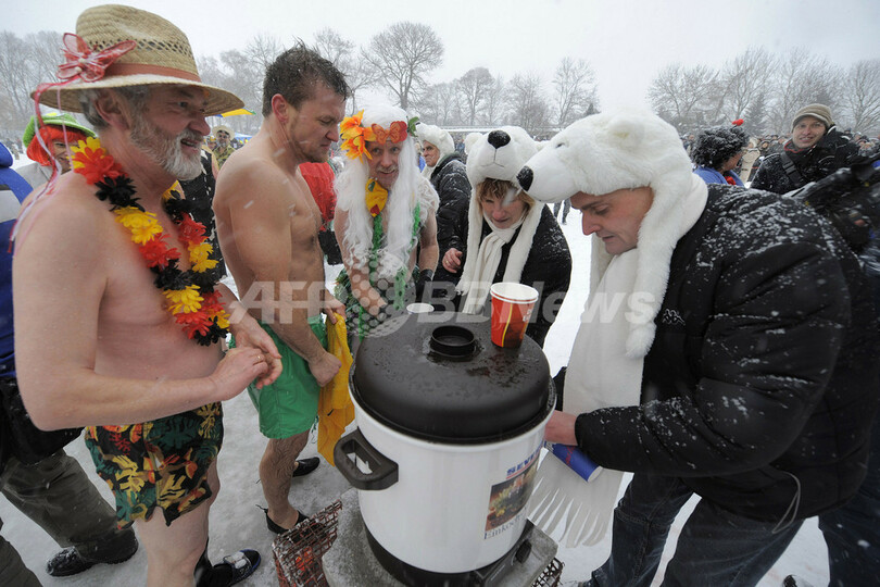 ニュース ライフ こぼれ話 ドイツで新春コスプレ寒中水泳 2010年1月10日 18:28 発信地:ベルリン/ドイツ [ ヨーロッパ ドイツ ] このニュースをシェア ‹ › ❮ 5/15 ❯ ドイツ首都ベルリン(Berlin)のオランケ湖(Orankesee)などで10日、新春恒例の寒中水泳大会が開かれ、マイナス3度の気温の中、妖精や天使、神々などの格好に扮した参加者たちが氷の張った湖に飛び込んだ。写真は寒中水泳後にあたたかい飲み物を飲む参加者たち(2010年1月10日撮影)。(c)AFP/DDP/AXEL SCHMIDT 画像作成中 ! 【1月10日 AFP】ドイツ首都ベルリン(Berlin)のオランケ湖(Orankesee)などで10日、新春恒例の寒中水泳大会が開かれ、マイナス3度の気温の中、妖精や天使、神々などの格好に扮した参加者たちが氷の張った湖に飛び込んだ。(c)AFP/DDP ライフ 一覧へ> メディア・報道関係・法人の方向け 写真・動画 購入のお問合せ>