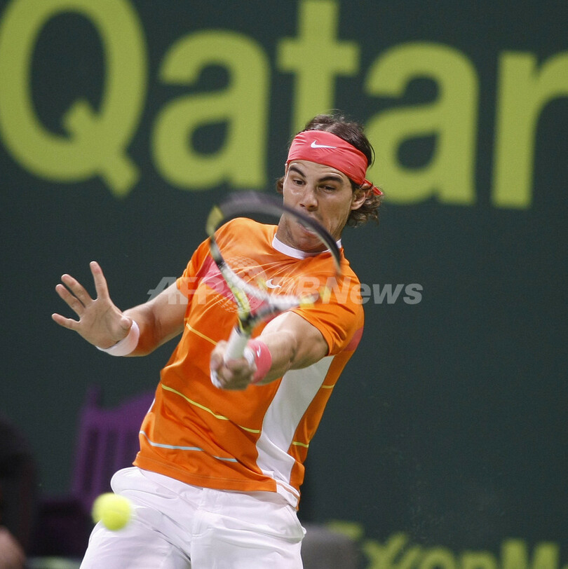 【1月10日 AFP】(写真追加)男子テニス、カタール・エクソンモービル・オープン(Qatar ExxonMobil Open 2010)シングルス決勝。大会第3シードのニコライ・ダビデンコ(Nikolay Davydenko、ロシア)は、大会第2シードのラファエル・ナダル(Rafael Nadal、スペイン)と対戦。ダビデンコは0-6、7-6、6-4でナダルを下し、優勝した。