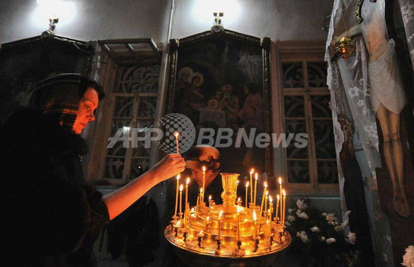 写真はキルギスの首都ビシケク(Bishkek)で正教会のクリスマス礼拝中にそうろくに火を灯す女性(2010年1月7日撮影)。(c)AFP/VYACHESLAV OSELEDKO