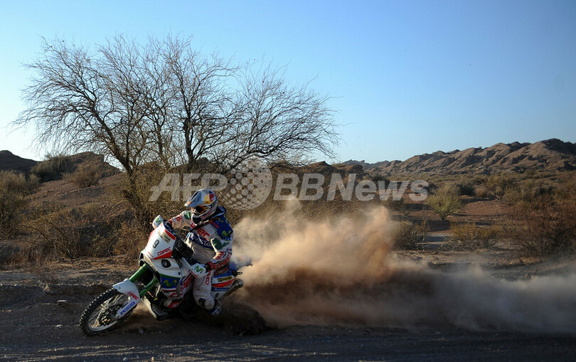 総合首位に立つKTMのシリル・デプレ(Cyril Despres、フランス)は、コンタルドに約17分差をつけられたが、合計タイムでは2位以下に1時間以上の差をつけている。(c)AFP