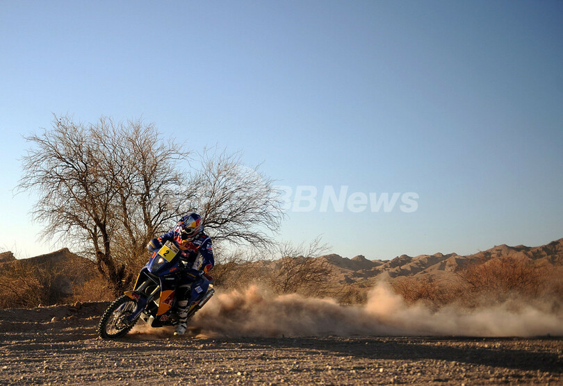 総合首位に立つKTMのシリル・デプレ(Cyril Despres、フランス)は、コンタルドに約17分差をつけられたが、合計タイムでは2位以下に1時間以上の差をつけている。(c)AFP