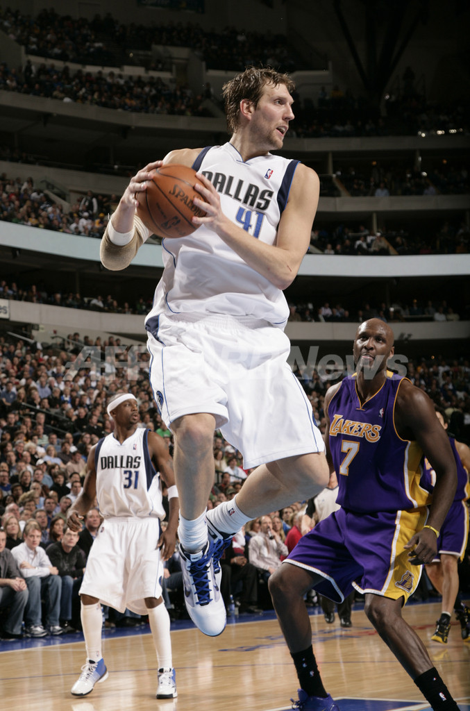 【1月14日AFP】(写真追加)09-10NBA、ダラス・マーベリックス(Dallas Mavericks)対ロサンゼルス・レイカーズ(Los Angeles Lakers)。試合はレイカーズが100-95で勝利した。