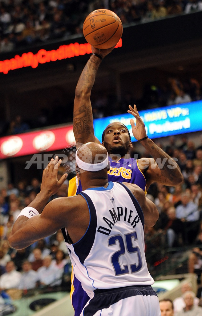 【1月14日AFP】(写真追加)09-10NBA、ダラス・マーベリックス(Dallas Mavericks)対ロサンゼルス・レイカーズ(Los Angeles Lakers)。試合はレイカーズが100-95で勝利した。