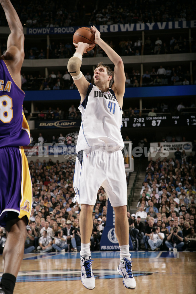 マーベリックスはダーク・ノビツキー(Dirk Nowitzki)がNBA史上34人目の通算2万得点を達成したが、レイカーズに勝利することはできなかった。ノビツキーは第4クォーター残り10分57秒で左のベースライン沿いから14フィートのジャンプシュートを決め、節目となる2万1得点目を記録した。31歳のノビツキーは通算876試合目で記録を達成している。