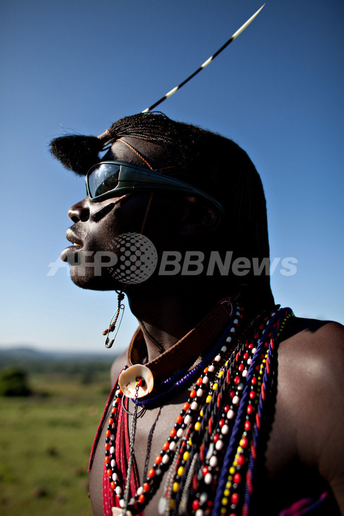 写真はケニア南西部Lolgorianで日食を観察するマサイ族の戦士(2010年1月15日撮影)。(c)AFP/Yasuyoshi CHIBA