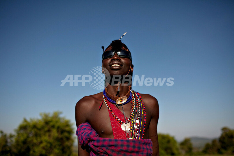 写真はケニア南西部Lolgorianで日食を観察するマサイ族の戦士(2010年1月15日撮影)。(c)AFP/Yasuyoshi CHIBA