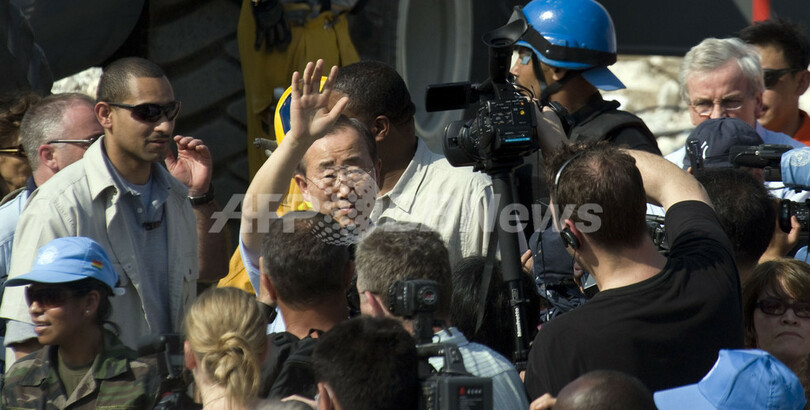ニュース 社会 国連事務総長、ハイチ訪問 地震被害の国連機関などを視察 2010年1月18日 11:01 発信地:ポルトープランス/ハイチ [ 中南米 ハイチ ] このニュースをシェア ‹ › ❮ 2/9 ❯ 国連(UN)の潘基文(パン・キムン、Ban Ki-moon)事務総長は17日、マグニチュード(M)7.0の大地震に見舞われたハイチの首都ポルトープランス(Port-au-Prince)を訪れ、地震の被害を受けた国連ハイチ安定化ミッション(MINUSTAH)本部などを視察した。写真は、MINUSTAH本部を視察する潘事務総長(中央、2010年1月17日撮影)。(c)AFP/NICOLAS KAMM 画像作成中 ! 【1月18日 AFP】国連(UN)の潘基文(パン・キムン、Ban Ki-moon)事務総長は17日、マグニチュード(M)7.0の大地震に見舞われたハイチの首都ポルトープランス(Port-au-Prince)を訪れ、地震の被害を受けた国連ハイチ安定化ミッション(MINUSTAH)本部などを視察した。(c)AFP 社会 一覧へ> メディア・報道関係・法人の方向け 写真・動画 購入のお問合せ>