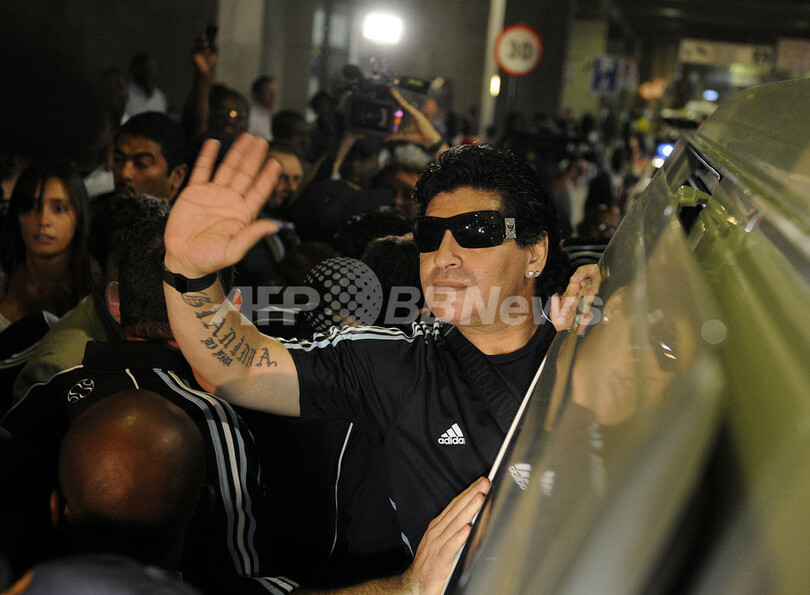 大きなサングラスをかけて空港に降り立ったマラドーナ監督は、待ち受けた報道陣に手を振り、投げキスをしながら「グラシアス、グラシアス(スペイン語で「ありがとう」の意)」とだけ話した。