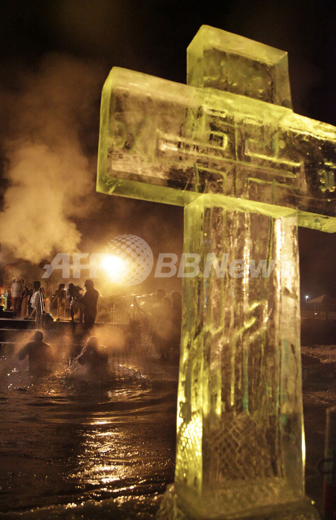 【1月20日 AFP】ロシア各地の湖や川で19日、ロシア正教会(Russian Orthodox Church)の公現祭(Epiphany)の行事の1つとして、氷のように冷たい水に漬かる敬虔(けいけん)な信者たちの姿が見られた。