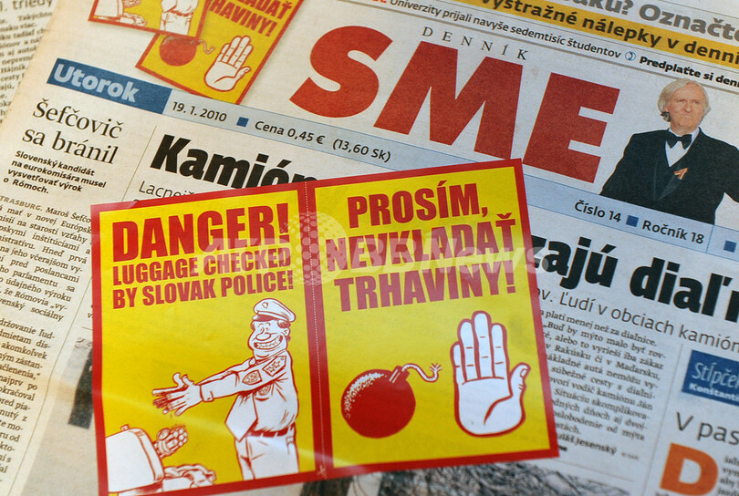 【1月20日 AFP】スロバキアでは、19日の大衆紙SMEが配布した2枚の警告ステッカーが人々の笑いを誘っている。