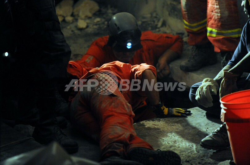 作業開始から3時間後、救助隊は、下敷きになった被災者の生存をついに確認した。