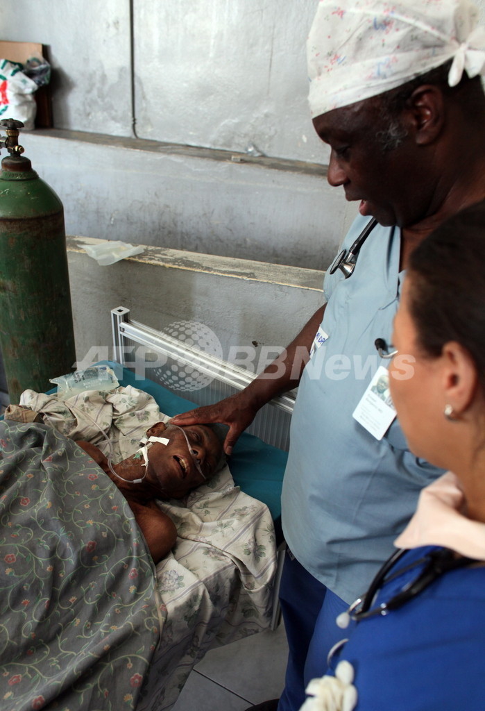 女性はポルトープランスの総合病院に運ばれ、点滴などの治療を受けている。米ニューヨーク(New York)市からやってきた医療ボランティアによると、病院に着いたとき女性は全く動きがなく、肋骨(ろっこつ)を骨折し、全身に大量のうじがわいていたが、その後少し口が動くようになったという。医師は今後24時間がヤマだと話している。
