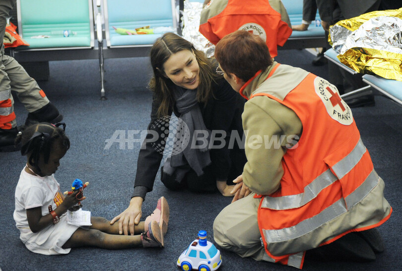 同日パリのシャルル・ド・ゴール国際空港(Charles de Gaulle International Airport)では、養子縁組をした家族や医療チームのほか、カーラ・ブルーニ(Carla Bruni)仏大統領夫人が子どもたちを出迎えた。