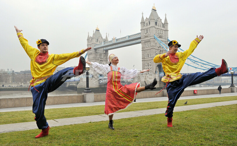 【1月23日 AFP】ロンドンのポッターズ・フィールド・パーク(Potters Fields Park)で2月7日からロシアの謝肉祭「マスレニツァ(Maslenitsa)」が開かれる。イベントではロシアの伝統的音楽や現代音楽の演奏が行われるほか、伝統料理や子供向けのアトラクションも楽しめる。これに先立ち、イベントの宣伝のためタワー・ブリッジ(Tower Bridge)付近で撮影会が行われた。(c)AFP